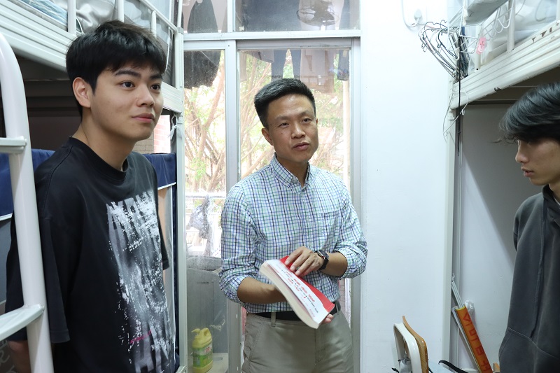 走访过程中,林维嘉与同学们亲切交流,详细询问假期学习生活、返校行程是否顺利及新学期课程准备情况,仔细查看宿舍环境并叮嘱大家注意用电安全与内务整理。期间,他还向同学们线下宣传广东全民终身学习平台:介绍了平台涵盖的职业技能课程、兴趣爱好拓展等多元学习资源,鼓励大家利用课余或碎片化时间登录平台自主学习,通过优质课程充实自我、提升综合能力。同时,林维嘉耐心倾听同学们的需求与困惑,提醒大家做好人身与财产安全防护,及时调整身心状态,科学制定新学期学习计划,保持规律作息,以饱满的精神面貌投入到新学期的学习与生活中。