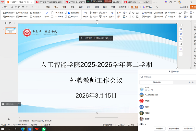 为进一步规范外聘教师教学管理,帮助外聘教师精准把握学院教学要求、吃透职业教育教学理念,全面提升外聘教师教学业务能力与教学质量,为新学期教学工作有序开展筑牢基础,2026年3月16日晚,人工智能学院以腾讯会议形式组织召开外聘教师教学工作培训会。学院副院长刘磊主持会议,学院教务员及全体外聘教师参加本次培训。
