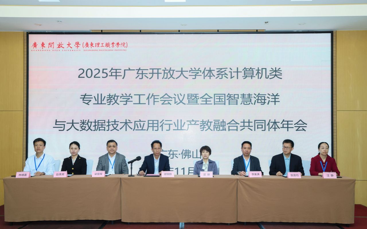 11月13日至15日,2025年全国智慧海洋与大数据应用行业产教融合共同体年会暨广东开放大学体系计算机类专业教师培训会在佛山召开,学校党委副书记谢锦群出席会议并致辞。全国智慧海洋与大数据应用行业产教融合共同体牵头单位广东海洋大学、广东泰迪智能科技股份有限公司有关领导、广东开放大学(广东理工职业学院)人工智能学院党政领导,共同体成员单位领导和代表以及全省各市、县(区)开放大学、合作办学教学点的相关专业负责人、骨干教师代表等160余人参加了会议。