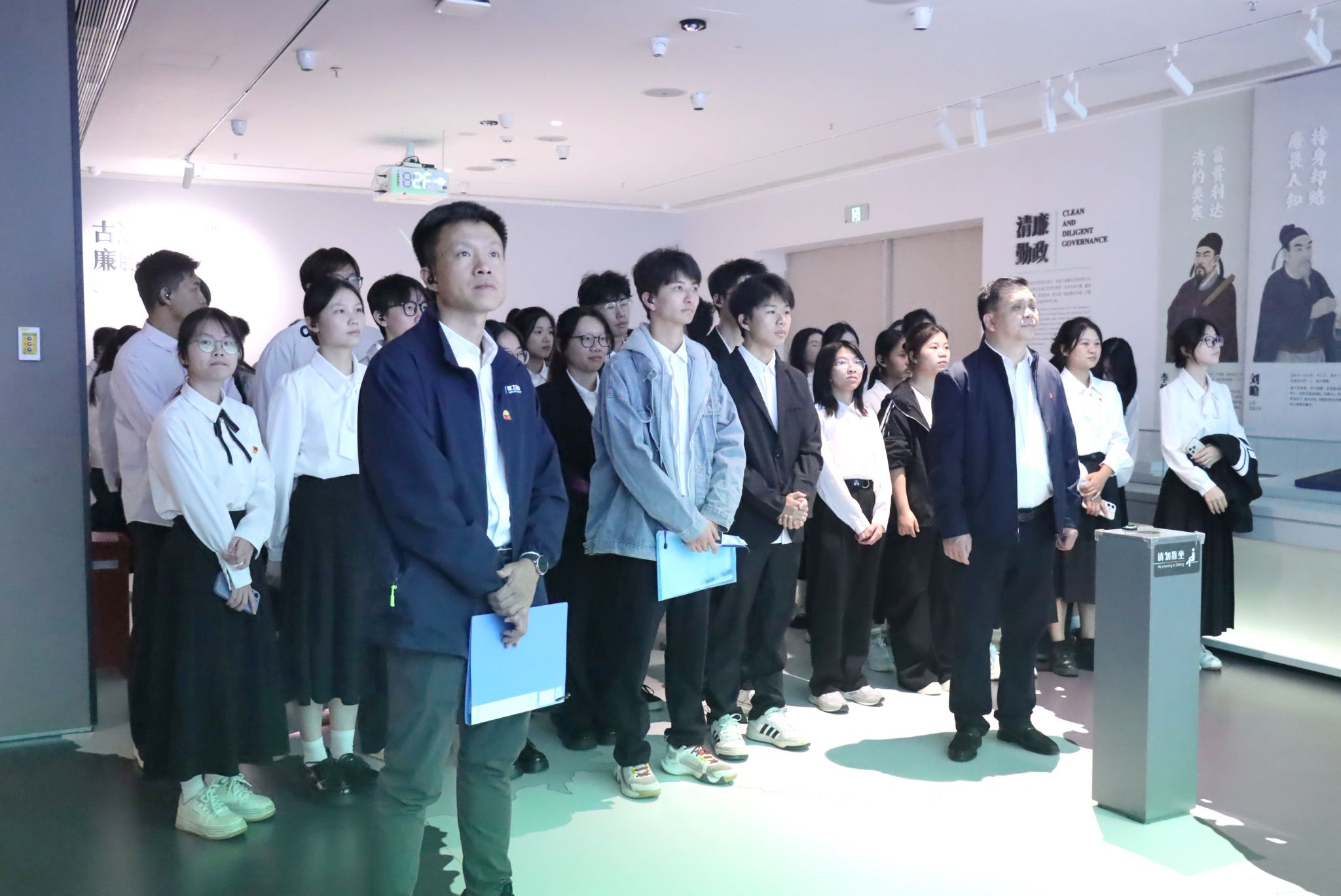 随后,林维嘉结合学习贯彻党的二十届四中全会精神与现场参观所见所感,为师生党员、党员发展对象和入党积极分子讲授了一堂生动的现场党课。他强调,廉洁是共产党人的政治本色,也是高校立德树人的重要内容。教师党员要争当廉洁从教的表率,以高尚的道德情操和人格魅力影响学生;学生党员要树立廉洁修身、诚信笃行的意识,努力成长为兼具过硬技术本领和高尚道德情操的时代新人。
