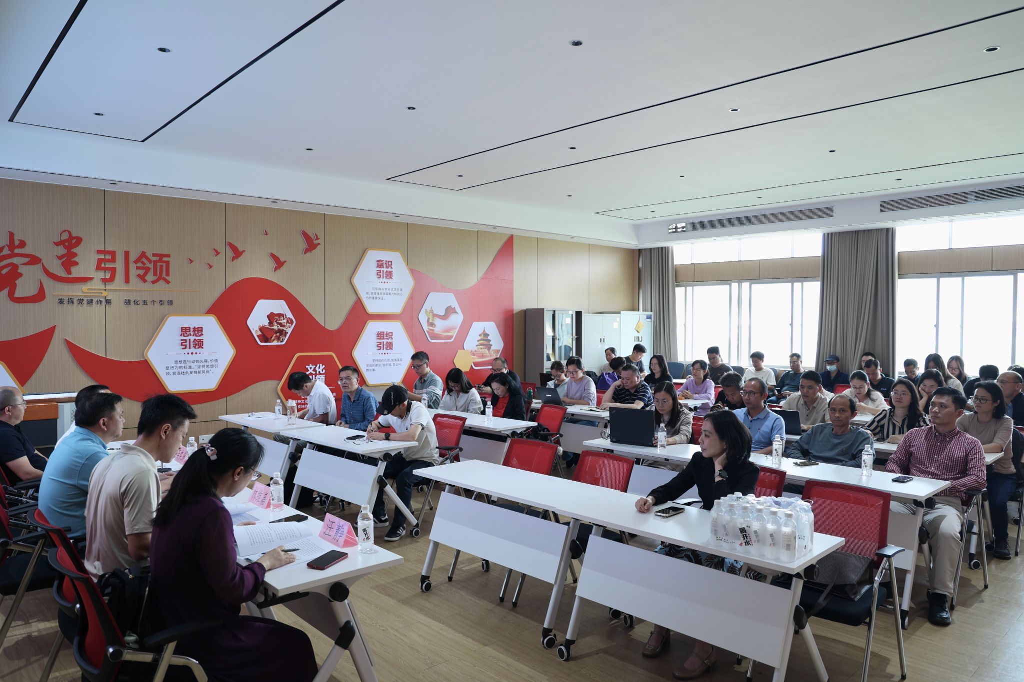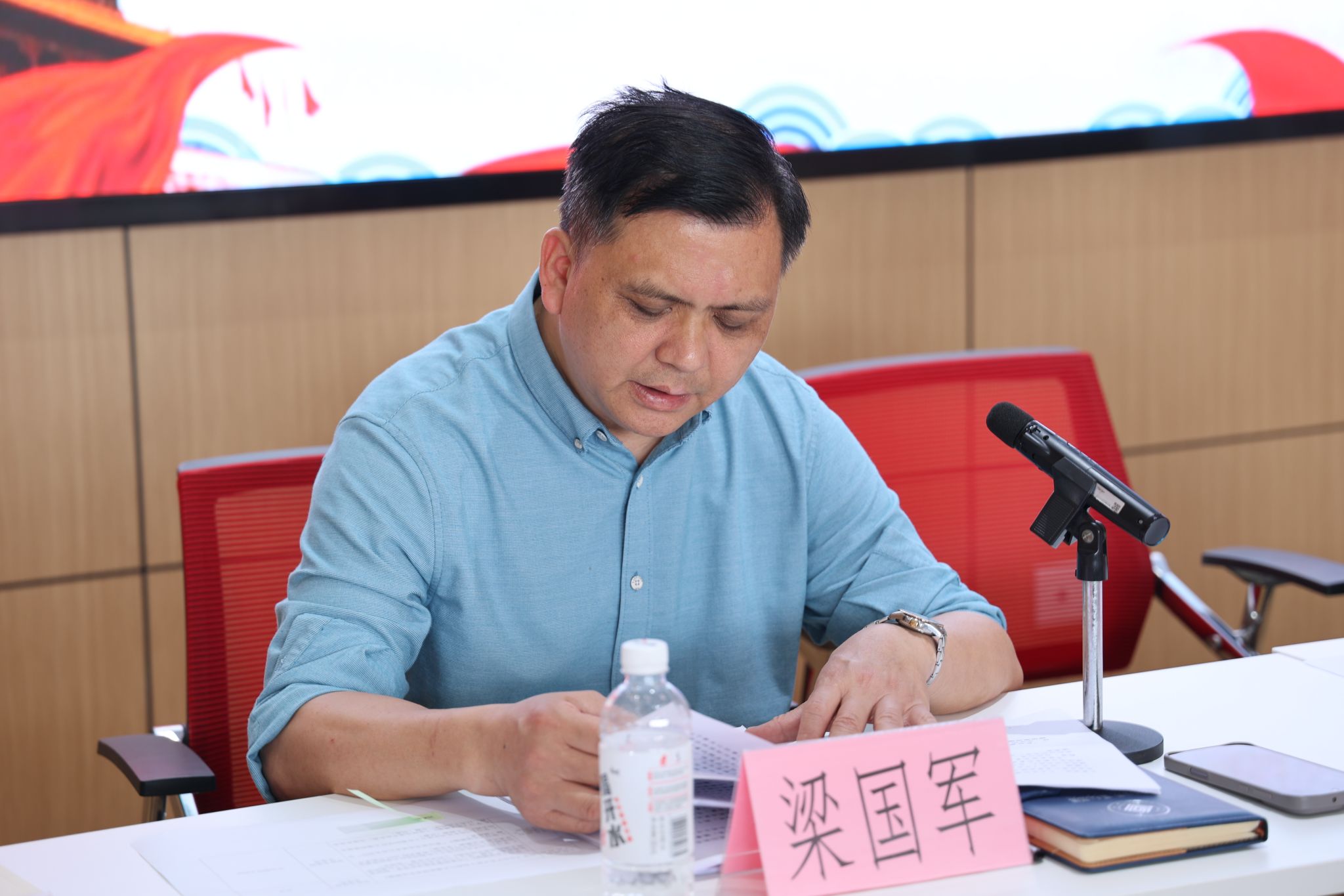 图|梁国军主持会议并领学