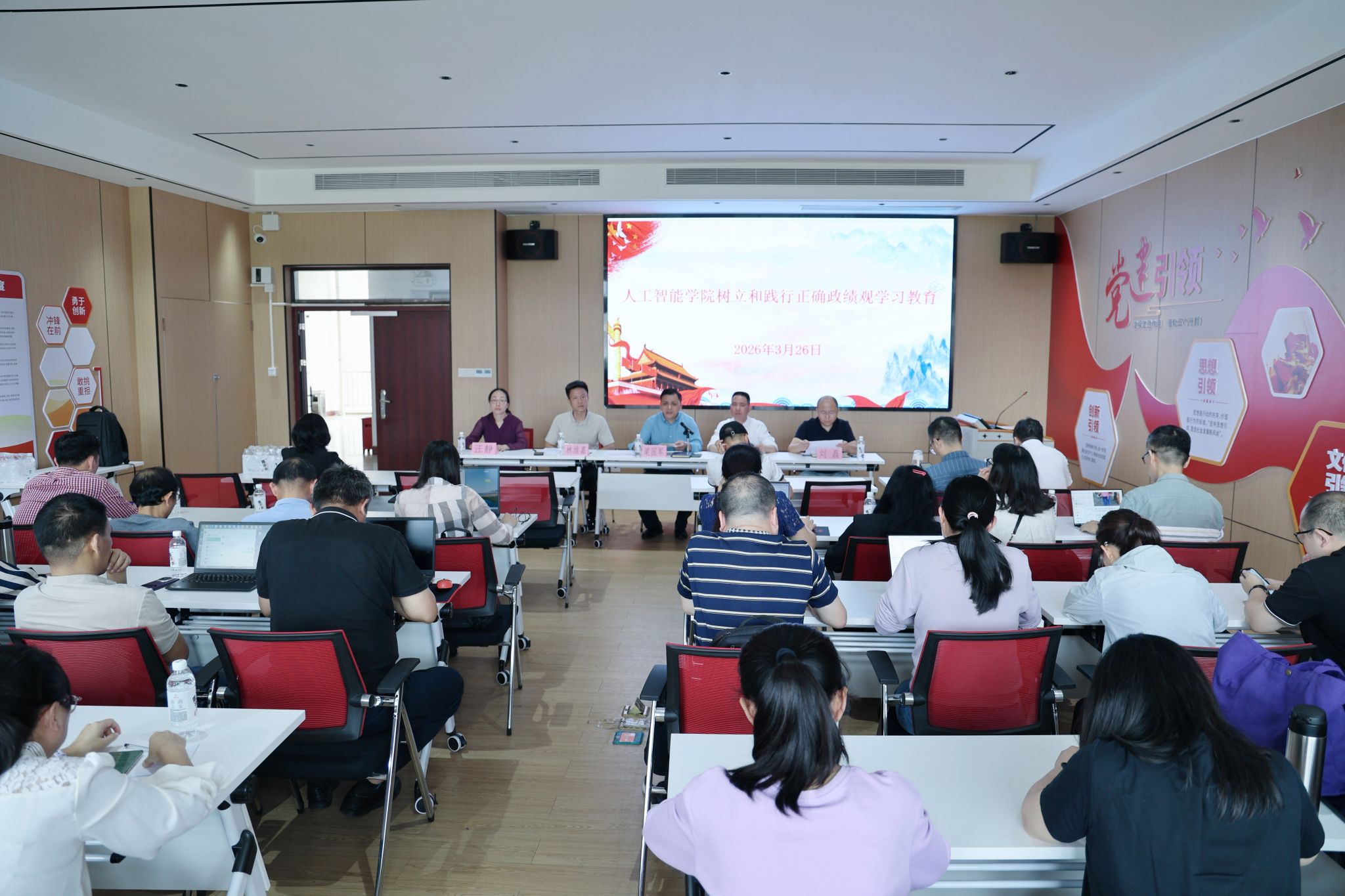 梁国军强调,学院高度重视此次学习教育,精心部署、统筹推进,制定了详细的学习教育实施方案,明确学习目标、学习内容、实施步骤和工作要求,全体党员要以此次学习教育为契机,深刻把握正确政绩观的时代内涵和实践要求,切实把思想和行动统一到党中央决策部署上来,确保学习教育成果落地生根。学院领导班子成员带头领学导学,结合分管工作谈认识、谈体会、谈举措,引导党员干部深刻把握“立党为公、为民造福”的根本要求,摒弃私心杂念,筑牢党性根基,坚决纠治政绩观偏差,自觉把个人工作融入学院发展和国家人工智能事业建设大局。